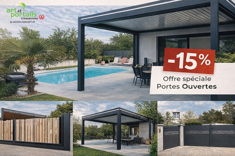 Art & Portails Strasbourg vous invite à ses portes ouvertes les vendredi 24, samedi 25 et dimanche 26 avril 2026, de 9h00 à 18h00, dans son showroom de Geispolsheim.Pendant ces trois journées, découvrez toutes nos solutions dédiées à l’aménagement extérieur, au confort, à la sécurité de votre habitation et profitez d’une offre spéciale de -15%